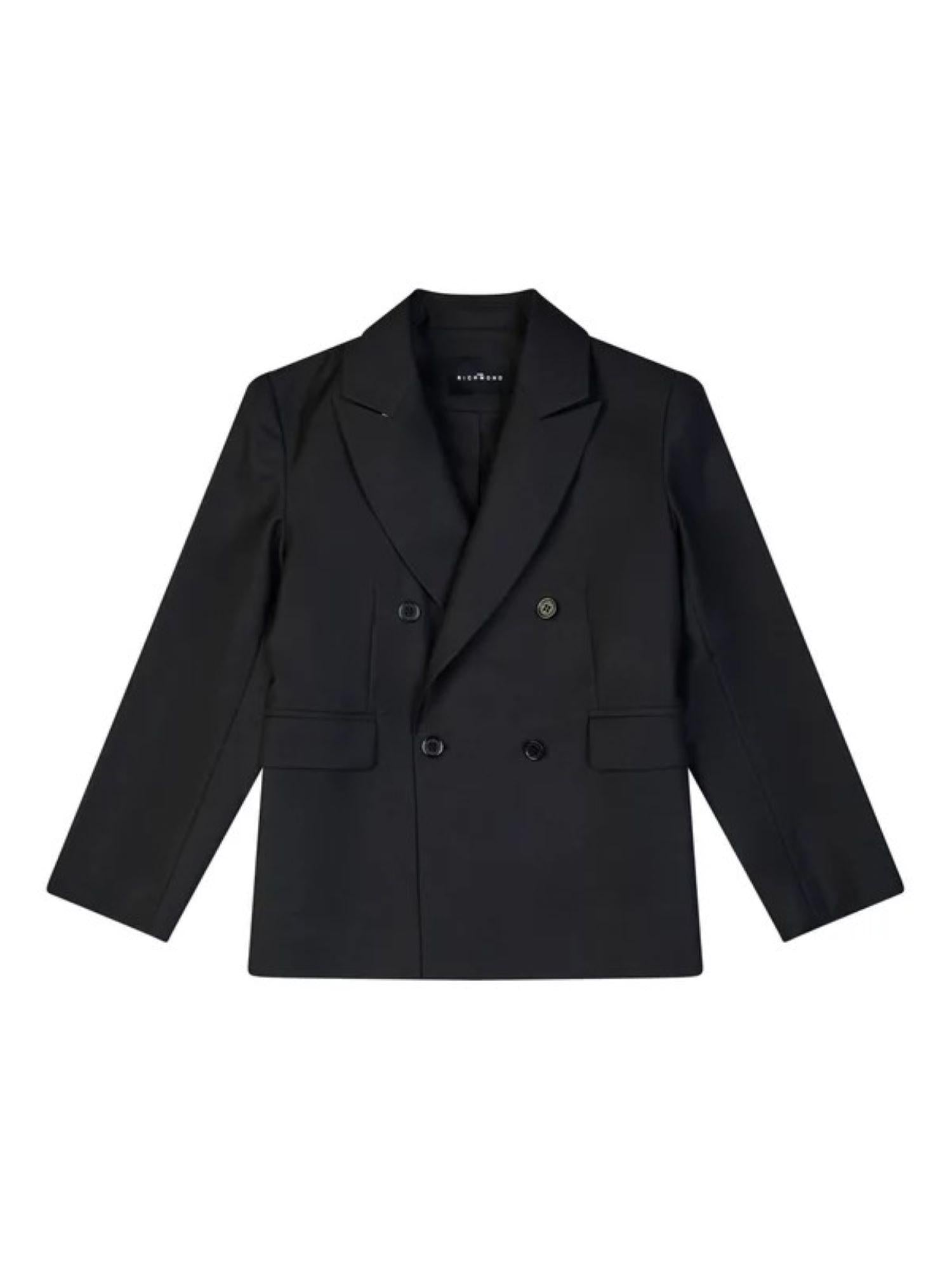 Giacca stile blazer da bambino realizzata in tessuto cady. Abbottonatura doppiopetto, collo con revers a lancia. Tasche con patta sul davanti. 84% poliestere 14% viscosa 2% elastan