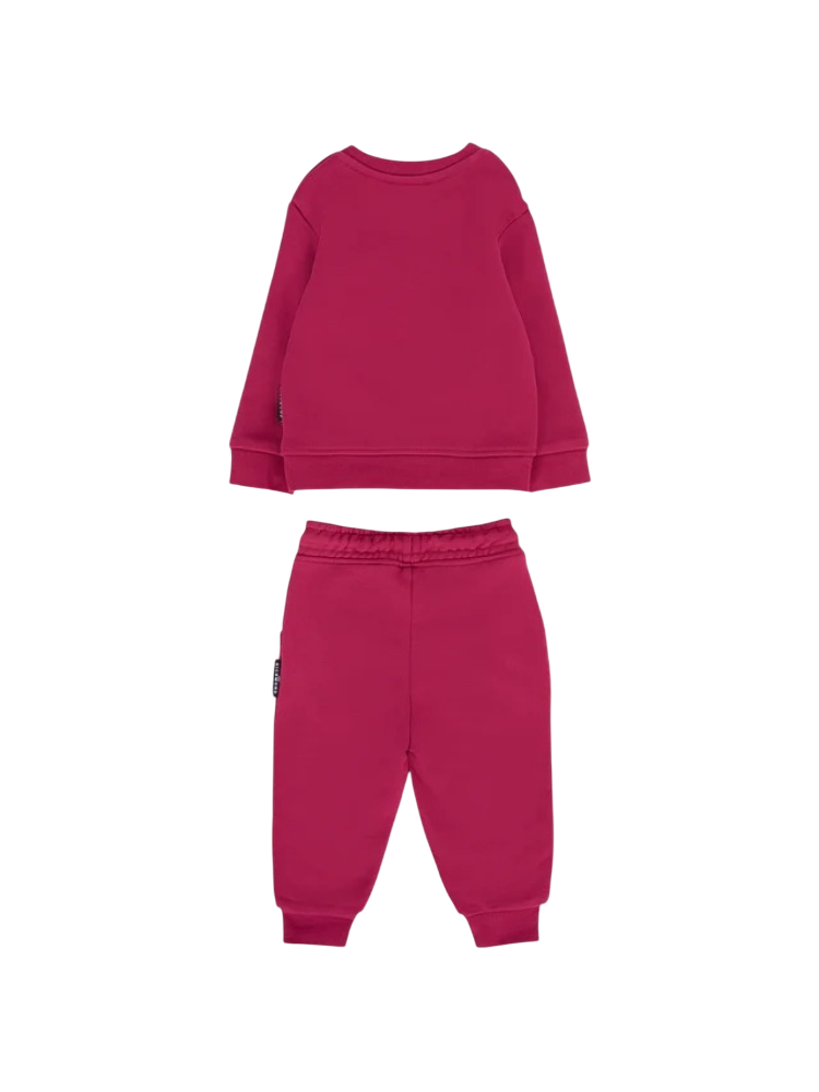 Completo da neonata composto da felpa e pantaloni joggers in spugna di misto cotone. Felpa con logo flock tono su tono sul davanti. Pantaloni joggers con logo flock. 86% cotone 14% poliestere