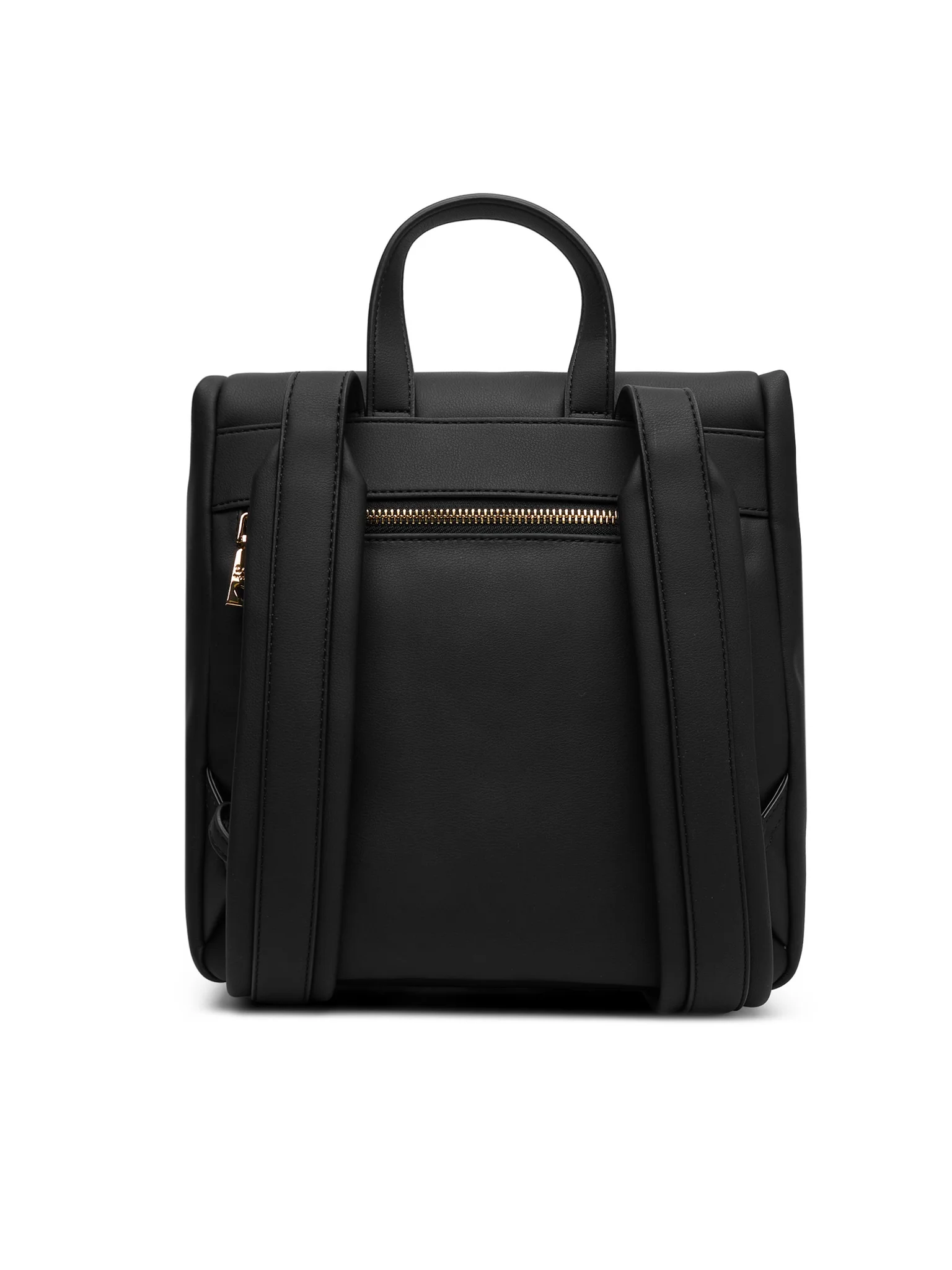 Zaino da donna realizzato in ecopelle. Placca del logo in galvanica dorata. Chiusura con bottoni automatici. Tasca con zip sul retro. Spallacci regolabili. Misure: 25X25X10 cm 100% poliuretano