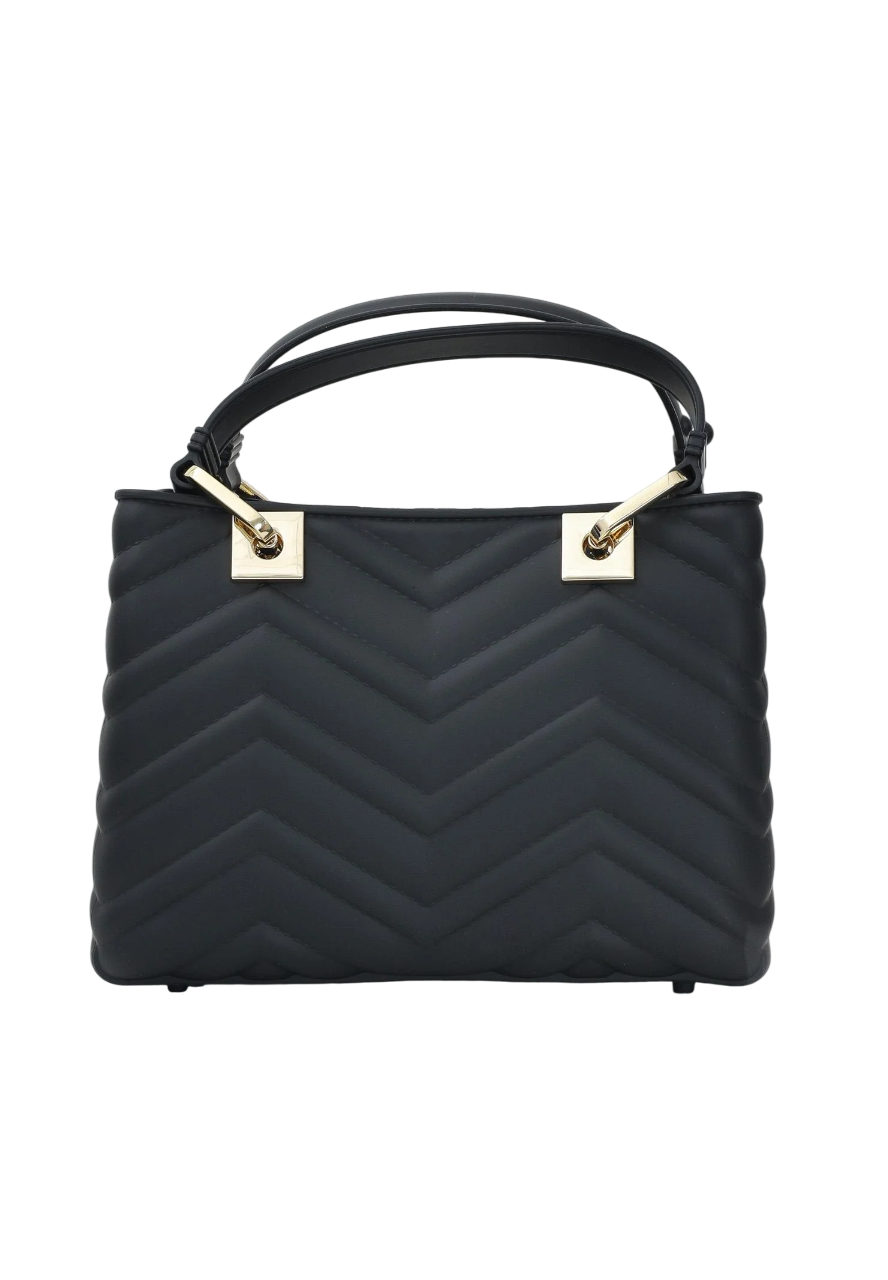 Borsa a mano da donna realizzata in gomma trapuntata. Due manici, portachiavi con charms logati in galvanica dorata. Tracolla rimovibile in canetè con logo jacquard. Misure 23x18x8 cm