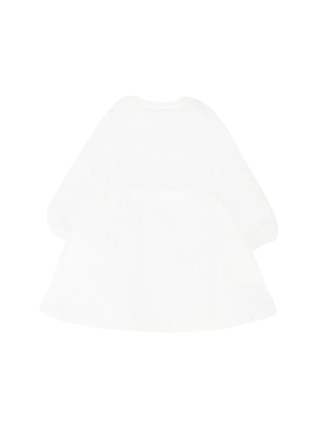 Abito da neonata in cotone felpato. Tasche sul davanti a forma di orsetto. Stampa del logo e dell'orsetto Teddy Bear. Interno felpato. 100% cotone
