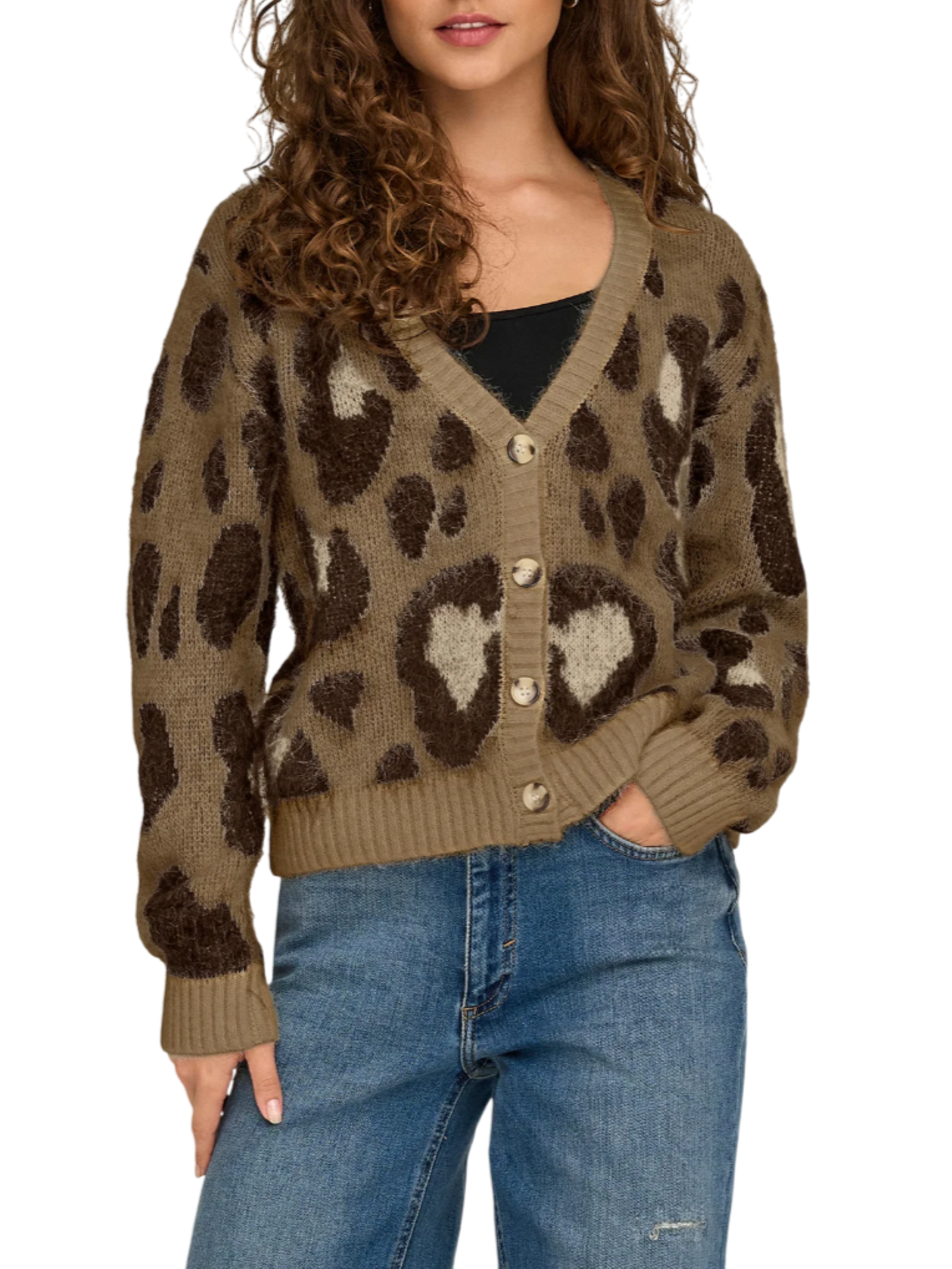Cardigan da donna realizzato in misto lana. Fantasia jacquard. 58% poliestere 24% acrilico 10% lana 8% nylon