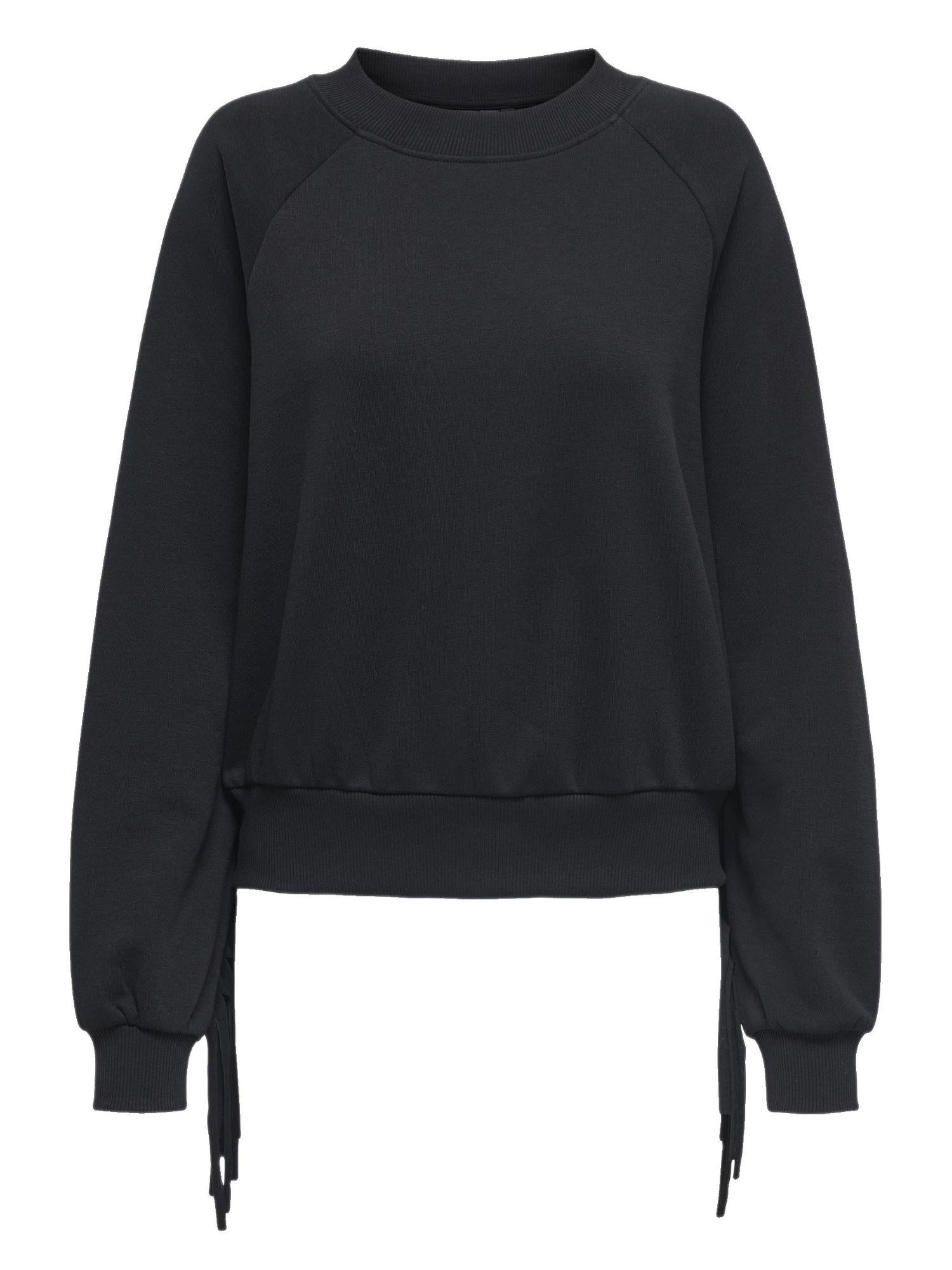 Felpa da donna con interno in pile. Le maniche sono caratterizzate da frange tono su tono. 60% cotone 40% poliestere