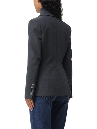 Giacca stile blazer da donna realizzata in poliviscosa stretch. Abbottonatura monopetto, collo con revers a lancia. Spalline imbottite, tasche con patta sul davanti. Bottoni sul fondo delle maniche.67% viscosa 28% nylon 5% elastan