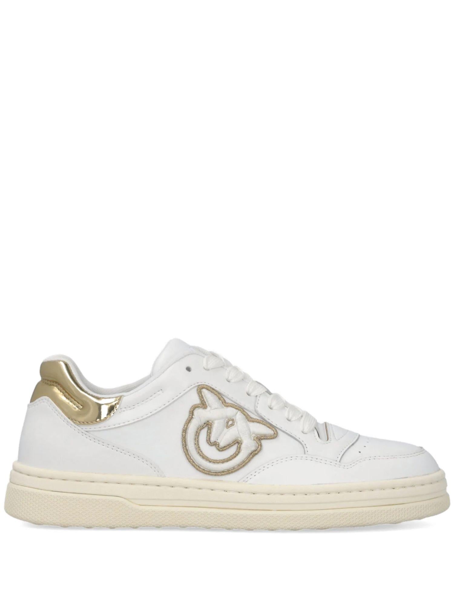 Pinko sneakers Mandy in pelle con logo Love Birds bianco oro