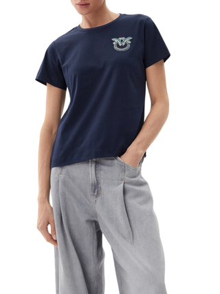 Pinko T-shirt manica corta Nambrone con logo gioiello blu