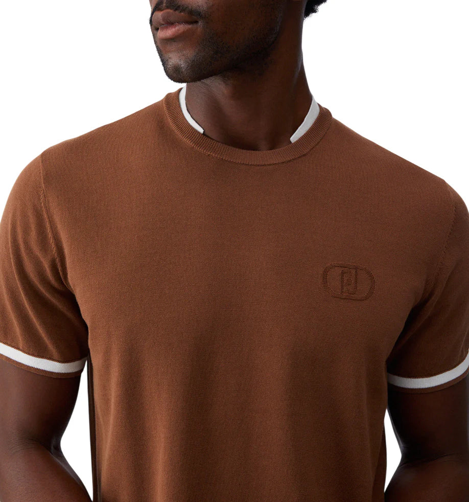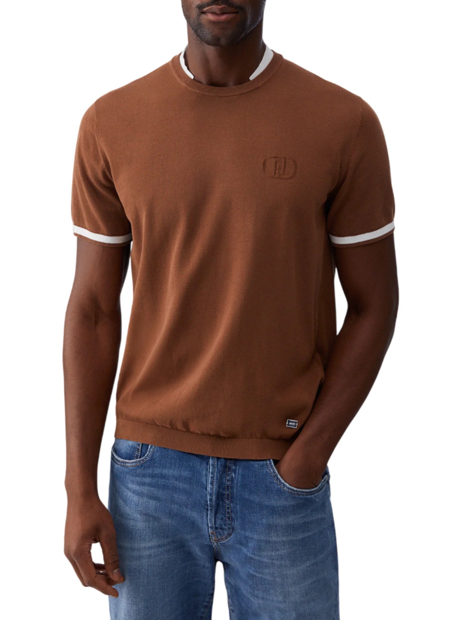 Maglia da uomo in cotone. Maniche corte. La maglia è caratterizzata da profili in contrasto di colore su scollo e fondo delle maniche. Logo monogram jacquard. 100% cotone