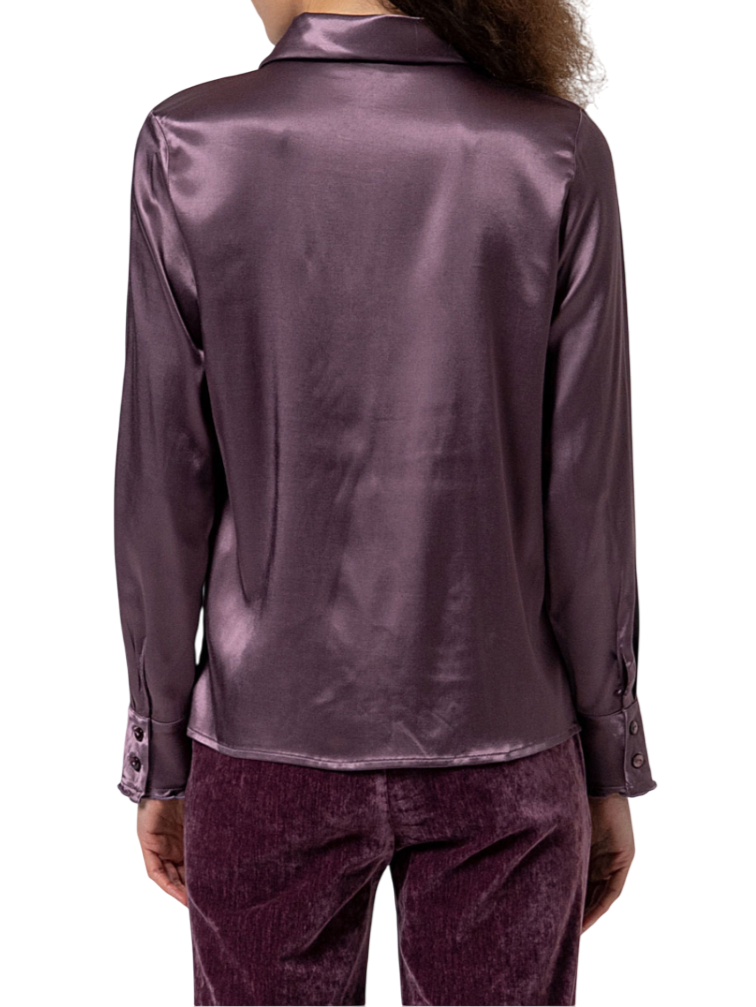 Camicia da donna realizzata in tessuto satin misto viscosa. Colletto classico, maniche lunghe. Questa camicia è perfetta per un look da ufficio, per un'occasione formale o una serata speciale. 54% rayon 42% viscosa 4% elastan