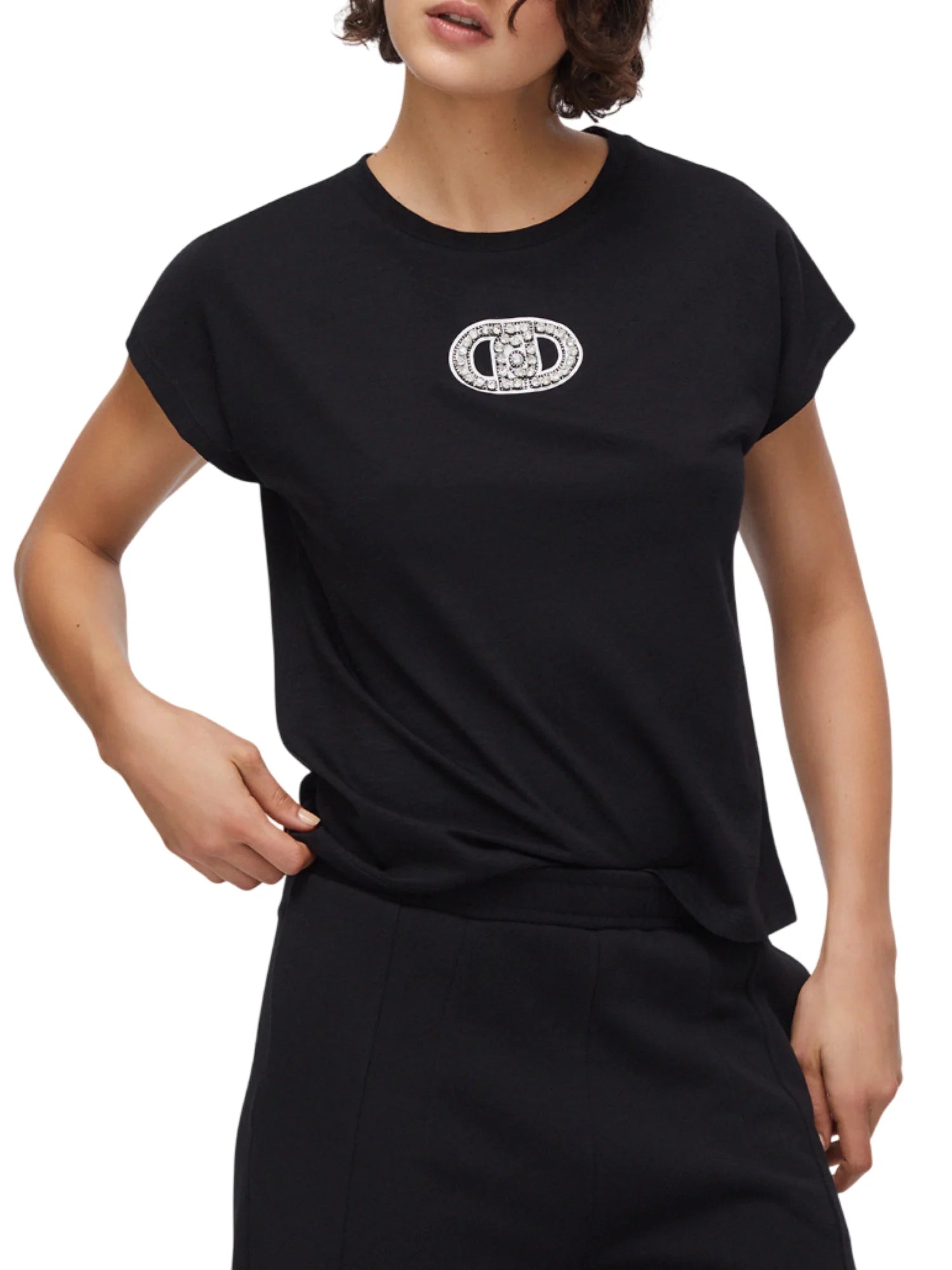 Liu Jo T-shirt manica corta con logo gioiello nero