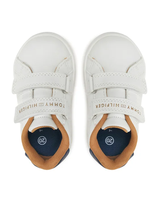Sneakers da bambino realizzate in ecopelle. Apertura con strappi sul davanti. Logo goffrato tono su tono sul lato esterno. Stampa del logo sullo strappo. Suola in gomma. Tomaia in similpelle Suola in gomma
