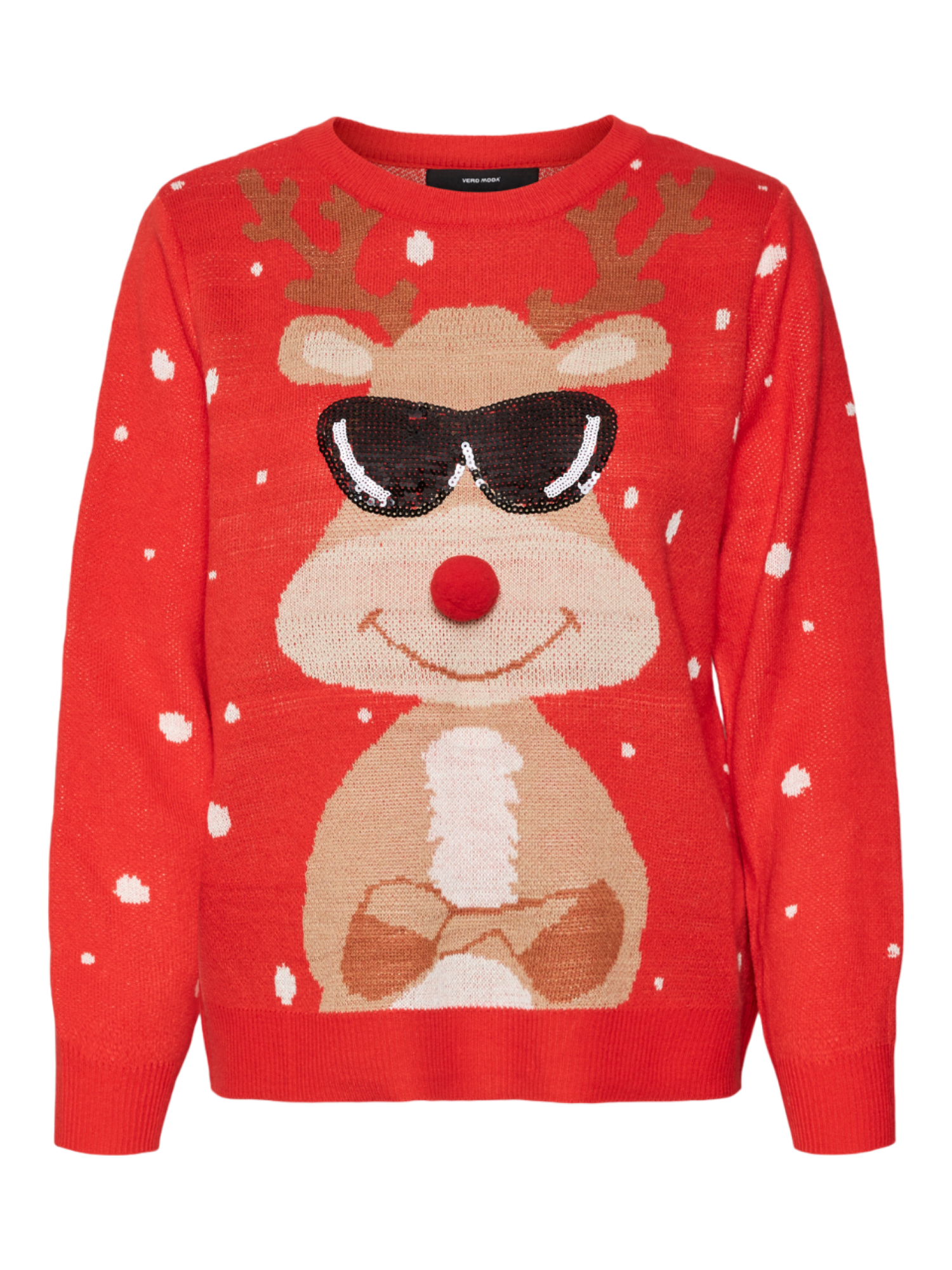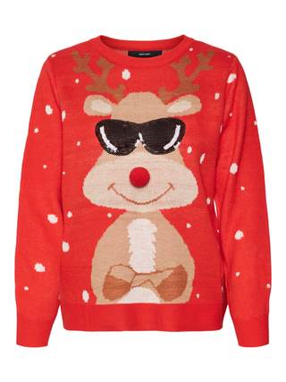 Maglia da donna in fantasia natalizia. Disegno di una renna jacquard sul davanti.100% acrilico