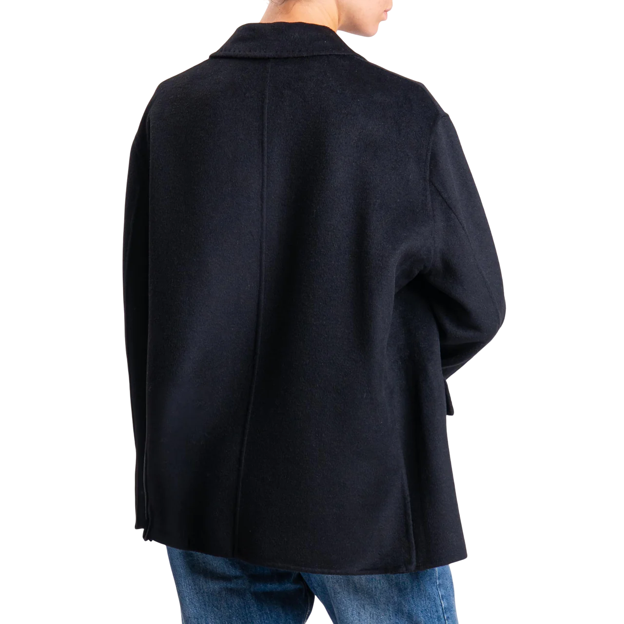 Cappotto stile blazer da donna realizzato in panno misto lana. Collo con revers, abbottonatura monopetto. Tasche con patta. Vestibilità oversize. 50% lana 50% poliestere