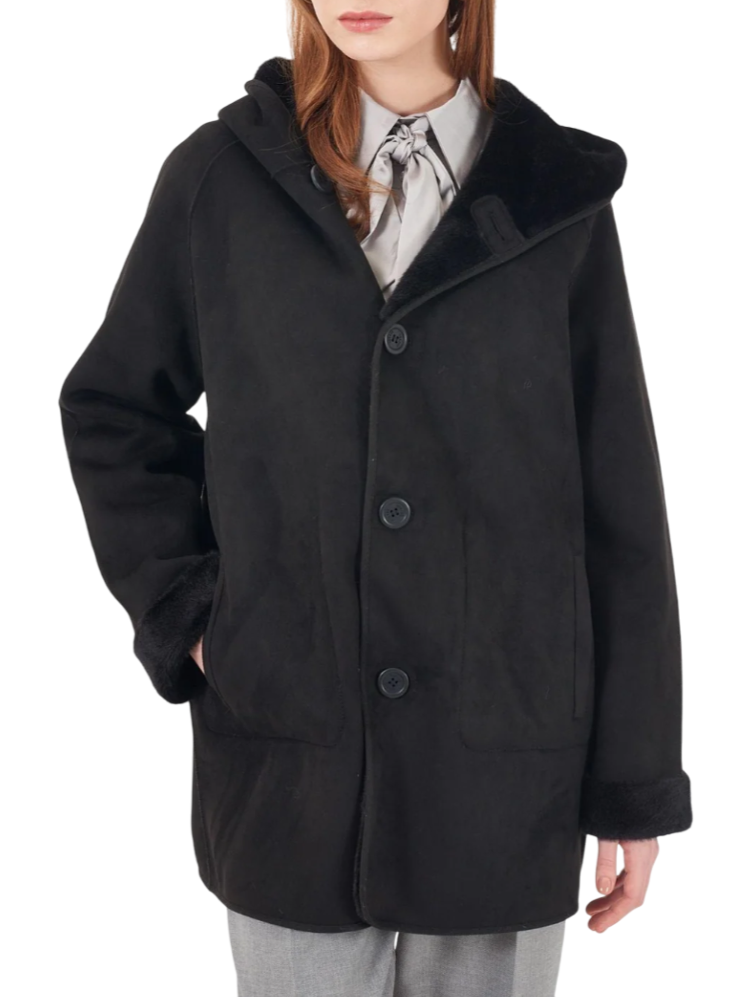 Yes Zee cappotto reversibile in ecopelliccia nero