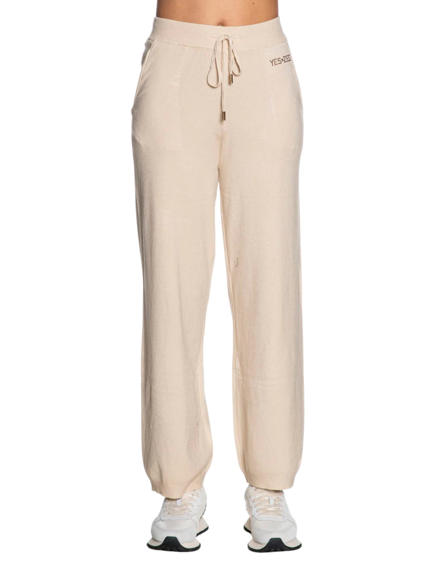 Yez Zee pantaloni in maglia gamba larga beige