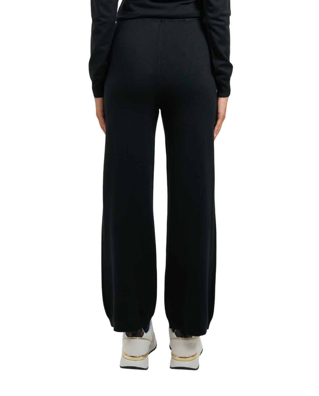 Pantaloni da donna realizzatai in maglia misto modal. Gamba larga. Vita elasticizzata con coulisse. 55% viscosa 30% poliammide 15% modal